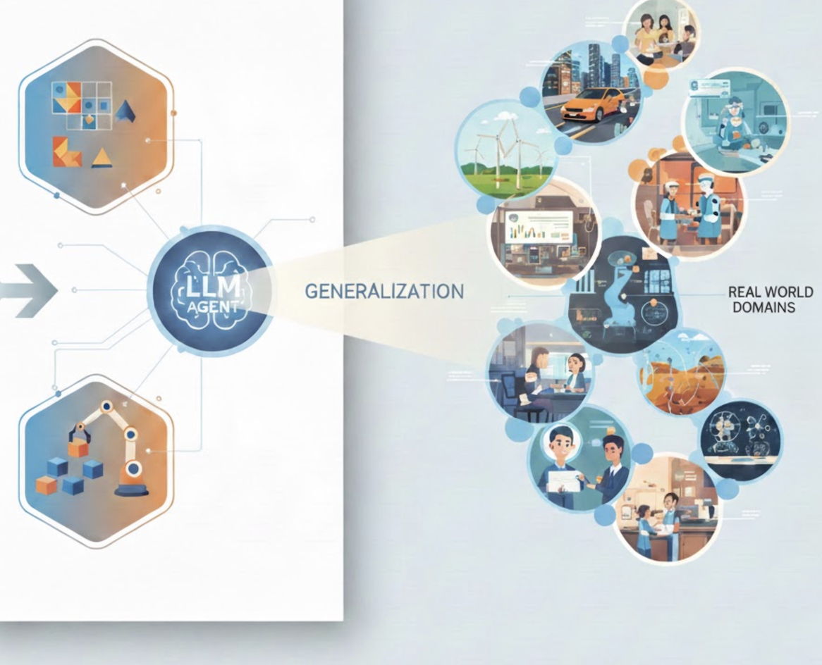 Our study reveals that training environments with higher state information richness and planning complexity are more effective for reducing the 'generalization tax' — a bottleneck of LLM agents when moving from limited training environments to broader, unseen real-world domains. This research also examines how mid-training and explicit thinking reshape knowledge retention and forgetting of RL.